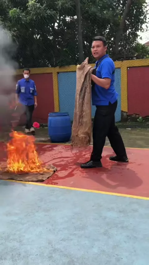 Bisa pakai karung goni, handuk atau selimut yang sudah di basahi yaa #memadamkanapi #kebakaran