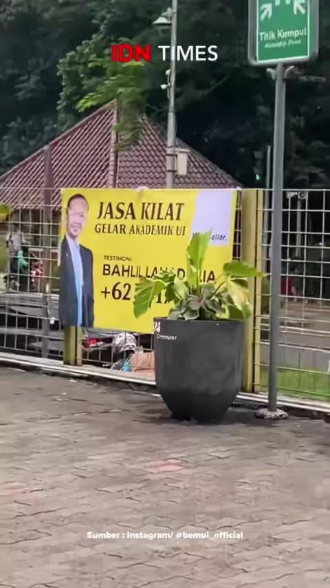 Badan Eksekutif Mahasiswa Universitas Indonesia (BEM UI) pada Senin (3/11/2024) memasang spanduk yang berisi sindiran bagi Menteri Energi dan Sumber Daya Mineral (ESDM), Bahlil Lahadalia. Spanduk dengan latar belakang warna kuning berisi penawaran jasa bagi masyarakat yang ingin bisa meraih program doktor dalam waktu cepat. Bahlil belum lama ini berhasil meraih gelar doktor dalam kurun waktu 1 tahun dan 8 bulan. #IDNTimes #idntimesnews #berita #news #BEMUI