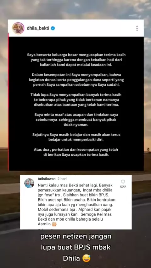 kocak netizen komentari postingan istri Indra Bekti, pesennya bikin ngakak #dhilabekti #indrabekti #bpjs #