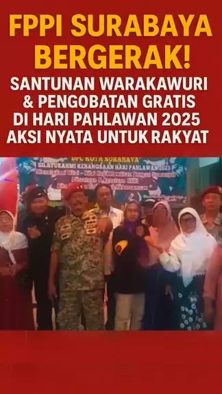 FPPI SURABAYA PEDULI! Santunan Warakawuri & Layanan Kesehatan Gratis — Aksi Nyata di Hari Pahlawan 2025 FPPI DPC Surabaya Jawa Timur kembali hadir dengan aksi nyata yang menyentuh rakyat. Memperingati Hari Pahlawan 2025, FPPI menyalurkan bantuan berupa santunan kepada Warakawuri (janda veteran), serta membuka layanan pengobatan gratis dan pemeriksaan laboratorium darah untuk keluarga veteran, kaum dhuafa, dan warga yang membutuhkan. Kegiatan ini turut dihadiri tokoh-tokoh FPPI yang selama ini