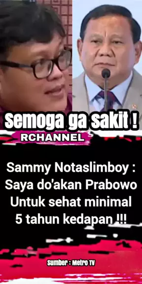 Sammy Notaslimboy : saya do'akan Prabowo untuk sehat minimal 5 tahun kedapan !!! #sammynotaslimboy #doa #prabowo #sehat #Gibran