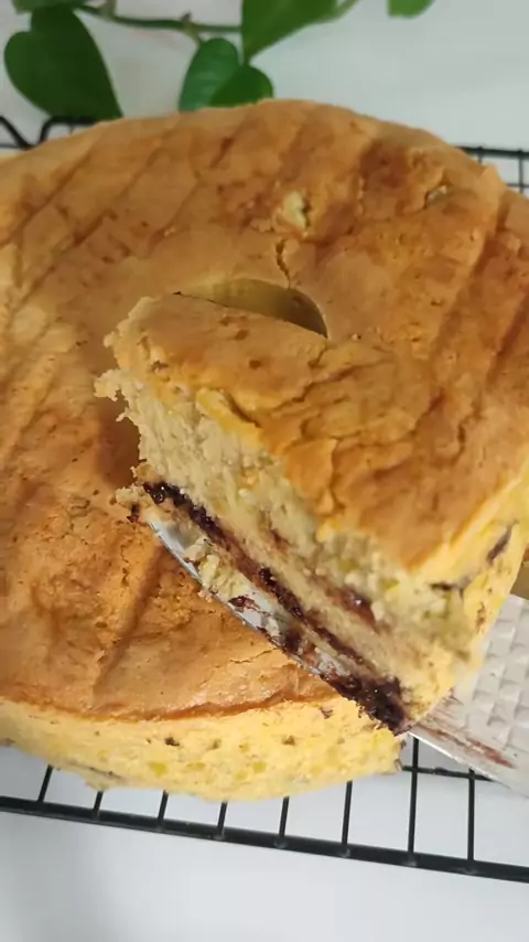 bolu pisang tanpa sp pakai pisang raja dan pastikan memakai telur kualitas bagus karena tidak pakai bahan pengembang bahan : 5 butir telur 180 gran gula pasir 300 gram pisang 210 gram tepung 40 gram susu bubuk 200 ml minyak Panggang suhu 170°C selama 60 menit