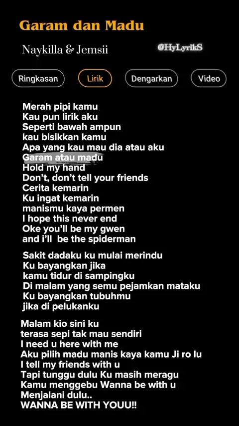 Lirik Lagu Garam Dan Madu - Naykilla & Jemsii Part 503 🎶 #lyrics #liriklagu #lagutrending #laguviral #musichits #kane #lagu #lagu #garamdanmadu