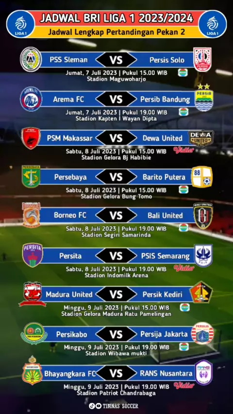 Jadwal BRI Liga 1 2023/2024 Pekan 2 #jadwalbriliga1 #jadwalbriliga12023 #jadwalbola #briliga1 #briliga12023 #liga1match #timnassoccer