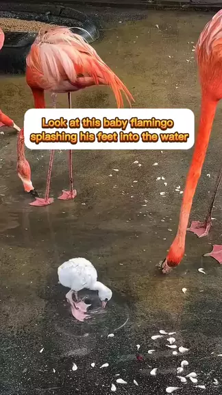 Flamingo Bebe batendo os pé na água #flamingo #animais #AVE