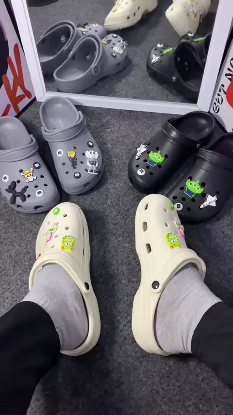 sandal baim + jibbitz cakep bangett #sandalslop #sandalclog #sandalbaim