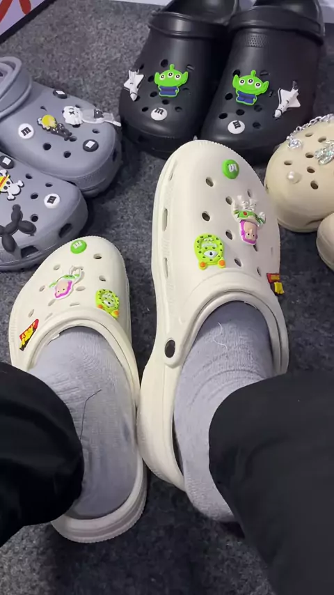 sandal baim + jibbitz cakep bangett #sandalslop #sandalclog #sandalbaim