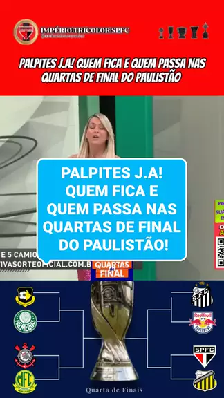 PALPITES J.A! QUEM FICA E QUEM PASSA NAS QUARTAS DE FINAL DO PAULISTÃO! #palpites #Paulistão #saopaulo #palmeiras #Corinthians