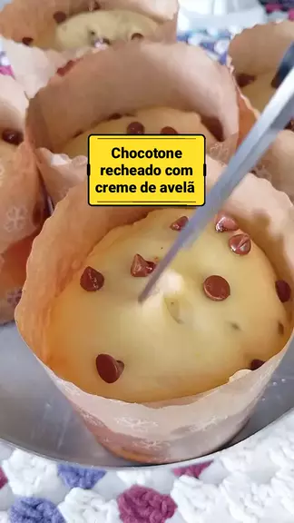 Chocotone recheado com creme de avelã! Ingredientes da esponja 120mL de água morna 10g de fermento biológico seco 100g de farinha de trigo ou 1 xícara Em outra vasilha coloque 400g de farinha de trigo 1/2 xícara de açúcar 1 pitada de sal Adicione a esponja aos secos mas 4 gemas 100g de margarina 100mL de leite morno 2 colheres de essência de panetone 1 colher de essência de baunilha 1/2 colher de chá de emulsificante #panetone #chocotone #Receita #receitasimples #foryo