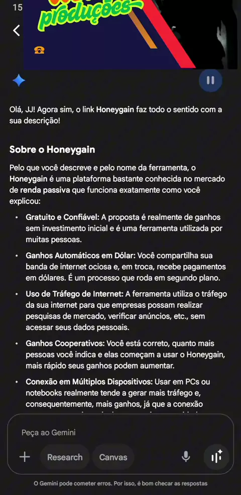 Gemini a respeito do honeygain