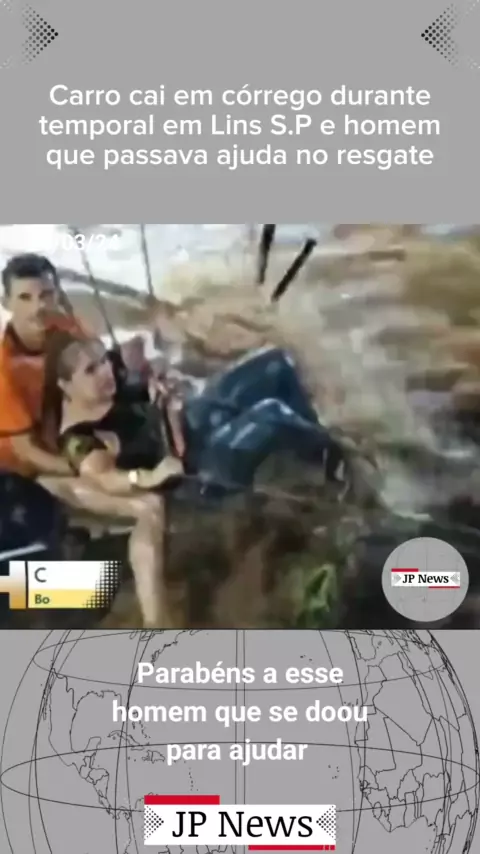 Carro cai em córrego e homem ajuda no resgate em Lins SP #noticias #News #sp #temporal #Lins