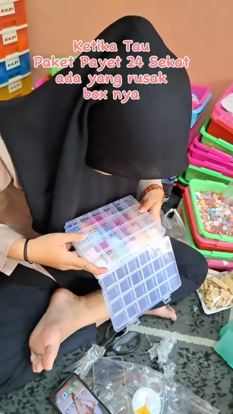 Kadang tuh ya, box udah cowel dari sananya, kita gak tau. tau tau pas udab disi payet, jadinya harus atraksi🤭🤭🤭🤭 #tokobahancraftsidoarjo #paketpayetpasir #paketmanikmanikbox #paketpayet24sekat