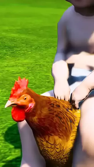 O bebezinho andando com a galinha