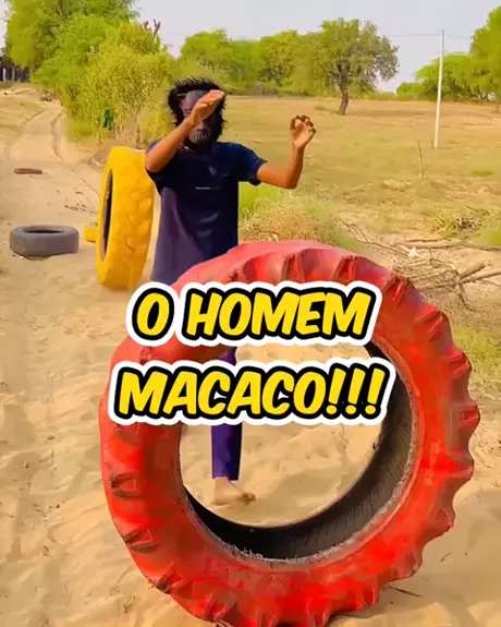 O homem macaco jogando os pneus #kids