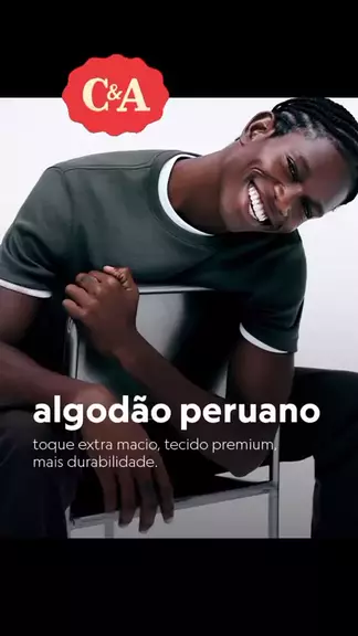 ALGODÃO PERUANO Toque extra macio, tecido premium, mais durabilidade. 🔗 LINK da C&A https://tidd.ly/4u3lrT5 A gente se encontra na C&A Compre em até 5X sem juros no cartão C&A ou no C&A Pay