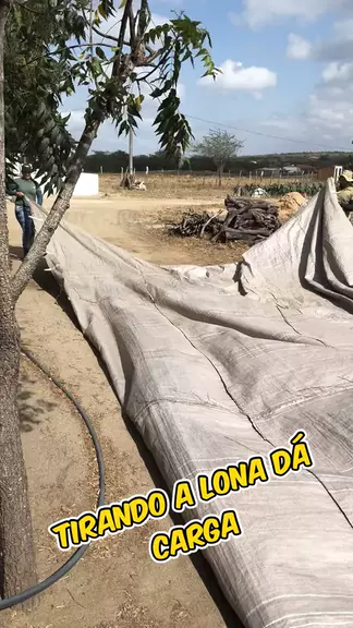 Tirando a lona da carga de bagaço de cana
