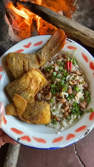 Peixe frito e baião! Vamos almoçar?