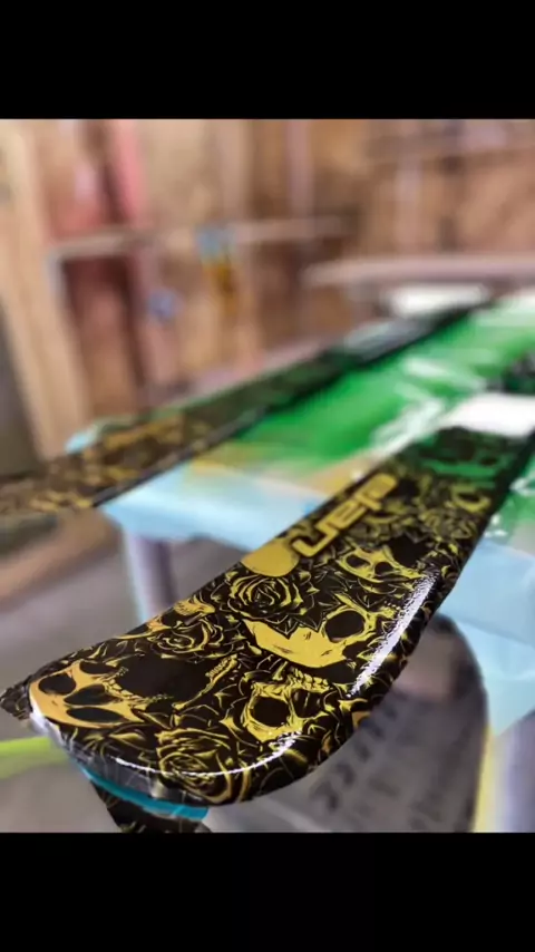 #centralalbertahydrographics #skiis #elanskis #skullsandroses #hydrographics #greenandgold