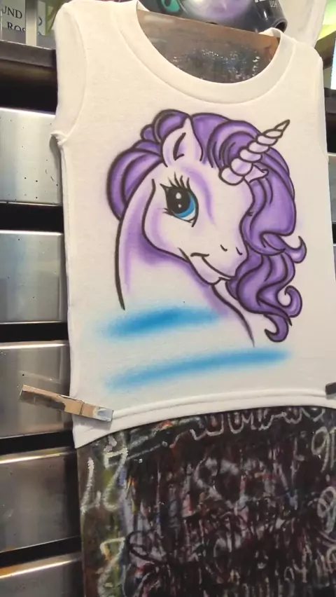 Airbrush unicorn design on a t-shirt #airbrushname #airbrush #art # #calligraphy #tshirt #cursivewriting #unicorn
