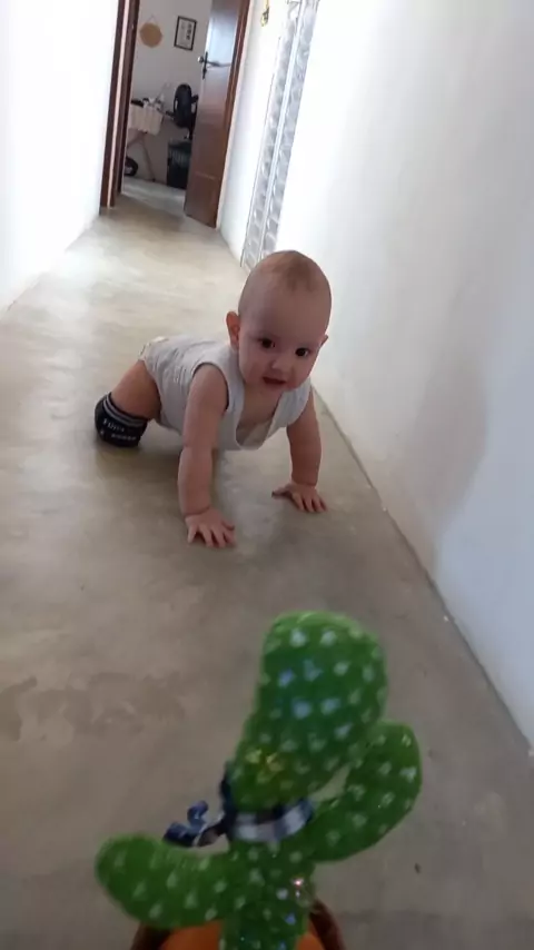 Atrás do cacto falante 😅 #bebê #cactofalante #engatinhando