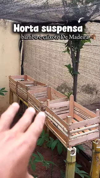 Criando uma horta suspensa com bambu e caixote de madeira