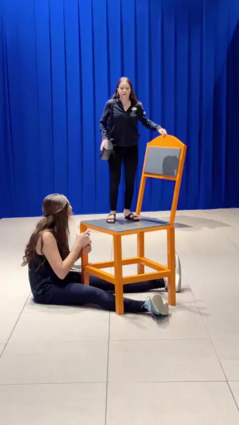 Ela ficou presa embaixo da cadeira
