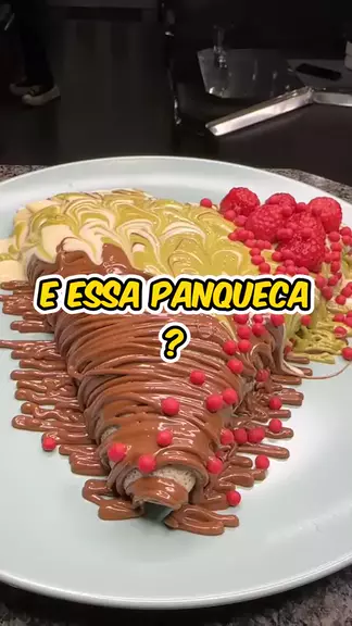 Panqueca com cobertura de chocolate. #panqueca