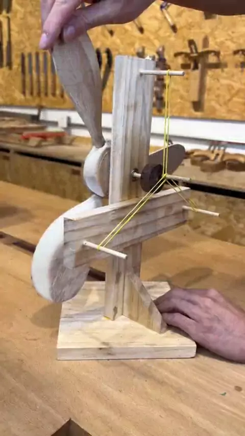 Faça um ventilador de madeira em movimento perpétuo por um elástico... # woodworking # wooddesign # woodcraft # DIY # fun...