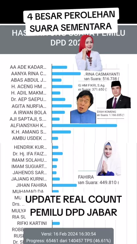 4 besar perolehan sementara calon DPD Jabar suara masuk 38% #update #realcount #kpu #dpd #jabar # ゚viral