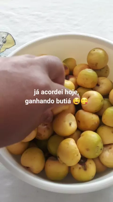 O butiá – ou coquinho azedo, coquinho, coco-cabeçudo – é o fruto das palmeiras do gênero Butiá, que ocorrem nas regiões Sul, Sudeste e Centro Oeste do Brasil. Xanxerê-Santa Catarina ❤ #ReceitaDaGula #segundaeucomeço #sul #santacatarina #butiá