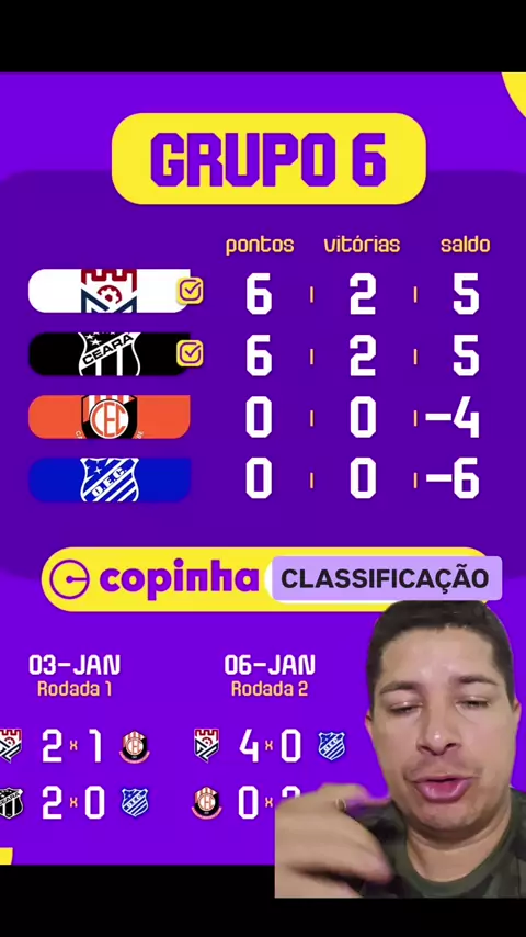 CLASSIFICAÇÃO ATUALIZADA DO GRUPO 6 DA COPINHA #Copinha #ceara #classificação #esporte #kwaiesportes