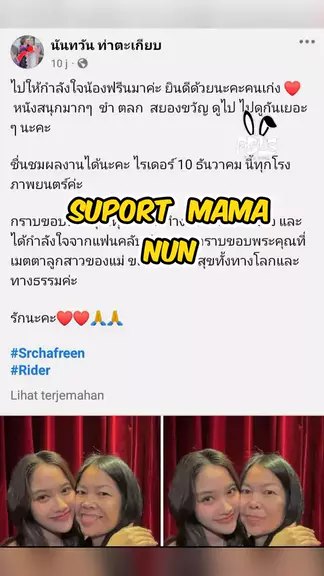 ไปให้กำลังใจน้องฟรีนมาค่ะ ยินดีด้วยนะคะคนเก่ง ❤️ หนังสนุกมากๆ ขำ ตลก สยองขวัญ ดูไป ไปดูกันเยอะ ๆ นะคะ ชื่นชมผลงานได้นะคะ ไรเดอร์ 10 ธันวาคม นี้ทุกโรงภาพยนตร์ค่ะ กราบขอบพระคุณทุกฝ่ายที่ทำงานกันอย่างตั้งใจ และได้กำลังใจจากแฟนคลับล้นหลาม กราบขอบพระคุณที่เมตตาลูกสาวของแม่ ขอให้มีความสุขทั้งทางโลกและทางธรรมค่ะ รักนะคะ❤️❤️🙏🙏 #srchafreen #rider #IbuNun #Happymotherday #RiderMoviexFreen