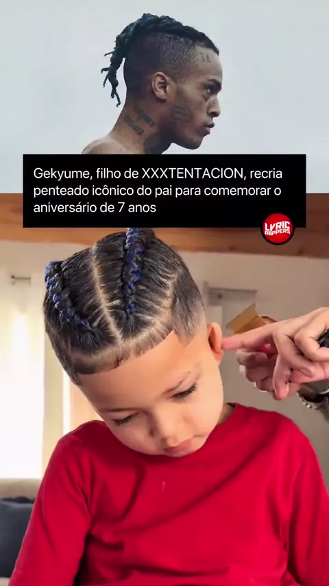 Ele tá crescendo e cada vez mais parecido com o pai 🥲🤍 Gekyume, filho de XXXTENTACION, acaba de completar 7 anos e recriou o penteado lendário do pai para comemorar o aniversário, em uma festinha com tema do Stitch. X faleceu em 18 de junho de 2018, aos 20 anos, e não teve a oportunidade de conviver com o filho, que nasceu em 26 de janeiro de 2019, cerca de sete meses após a morte do artista.