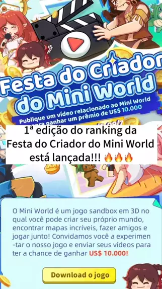 1ª edição do ranking da Festa do Criador do Mini World está lançada!!! 🔥🔥🔥 Mais de 30 criadores já ganharam bônus por participar da atividade! Junte-se a nós agora! Mais de US$ 10.000 de prêmio está te esperando!#Miniworld