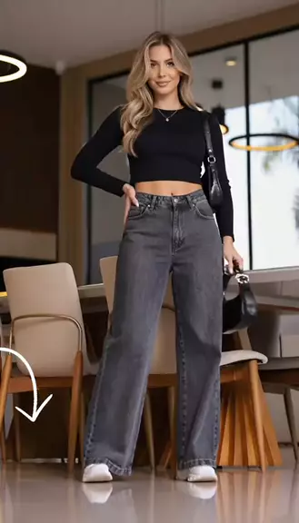 CalΓ§a Jeans Feminina Wide Leg Grafite#achadinhokwaishop #premiokwai2025 #kwai