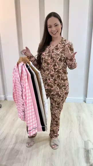 Pijama Feminino Manga longa Aberto Com BotΓ£o Sy07