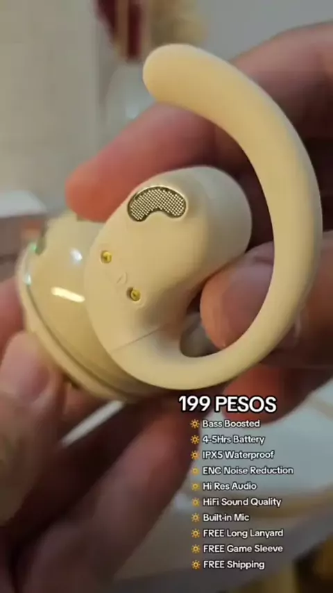 Fone de Ouvido Sem Fio Bluetooth TWS Design ergonômico com suporte para orelha, antiqueda e som de alta qualidade. Conforto e liberdade para ouvir música ou atender chamadas. #FoneBluetooth #TWS #Antiqueda #Ergonômico #SomPremium