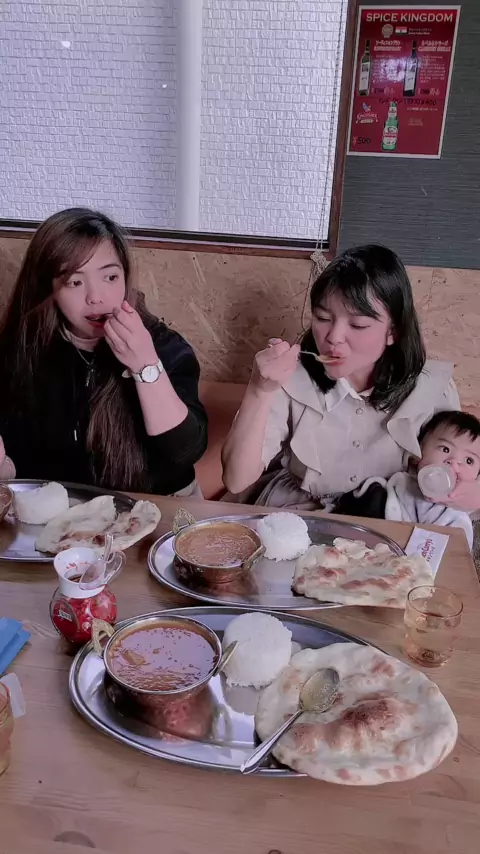 今日はフィリピン人の友達とインドのカレーを食べました🍛。とても美味しかったです。私は一番大量と安い値段を選びました。スプーンを買えますように節約してます🤩#sounds #インド料理 #息子可愛い #手で食べる文化