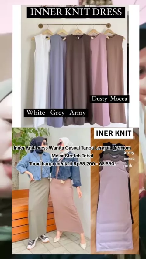 Inner Knit Dress Wanita Casual Tanpa Lengan Premium Melar Stretch Tebal Turun harga menjadi Rp55.200 - 65.550!#InnerKnitDress#Dress
