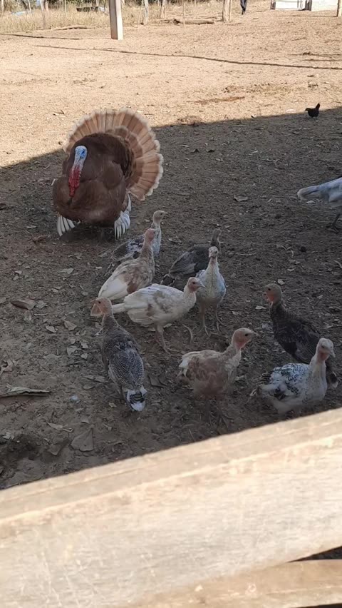 Turminha do barulho! Os peruzinhos daqui são tratados com ovo cozido até terem independência pra buscar maior variedade de alimento, por isso é só chegar perto que eles vem correndo com esperança de ganhar um ovinho..