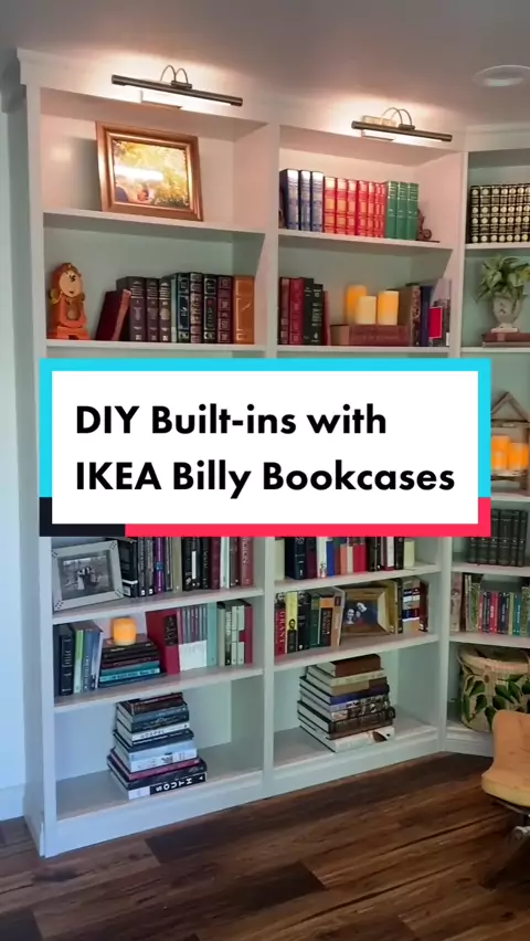 Built in library for cheap with this IKEA hack! #fixerupper #homelibrary #booknerd #interiordesign #homeremodel #homeremodeling #beforeandafter #decor