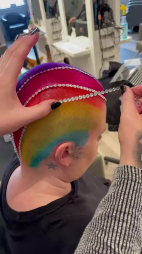 #shavedhead#TeamofTomorrow#MACChallengeAccepted#rainbowhair#rhinestones#pulpriot#hairstylist#newhampshire