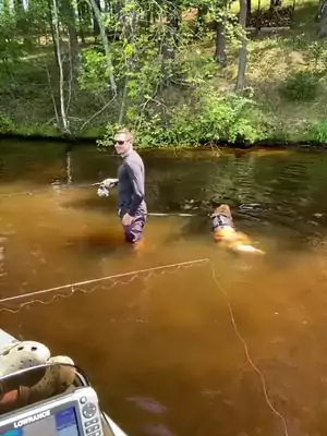 Swimming circles #jk9harness #goldenretrieverlife #dog