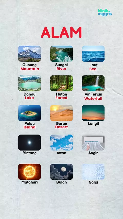 Bahasa inggris alam #kampunginggrispare #belajarbahasainggris #BAHASAINGGRIS #vocabulary #learnindonesia #learnindonesianintermediate #speakingenglish #kosakatabahasainggris #bahasainggris #klinikinggris #kampunginggris #KLINIKINGGRIS