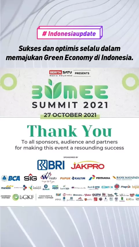 Added by @beritasatu BeritaSatu post Selamat atas pencapaian terbaiknya kepada para penerima penghargaan ESG Disclosure Awards 2021, BUMEE Summit. Sukses dan optimis selalu dalam memajukan Green Economy di Indonesia. #Bumee #BumeeSummit2021 #Event #GreenEconomy #BeritaSatu #membumikanmanusia #Memanusiakanbumi More