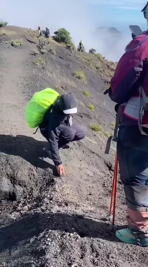 Medan trek summit ke Puncak Rinjani yang cukup berbahaya. Lebar trek kurang dari satu meter sehingga dihimbau saat malam hari harus menggunakan headlamp. Selalu perhatikan setiap langkah agar tidak terpeleset dan terjatuh ke tebing jurang. Sumber : @awan_guide