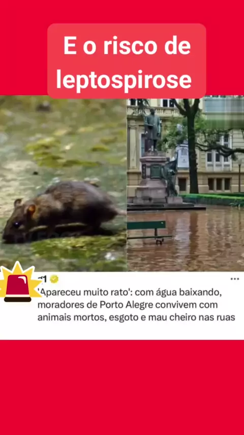Doença bacteriana transmitida pela urina de animais infectados. Infecção humana resultante da exposição direta ou indireta à urina de animais infectados, por meio do contato com água, solo ou alimentos contaminados. #Notícia #ultimasnoticias #riograndedosul #rato #leptospirose