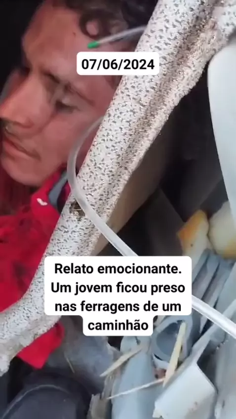 #Notícia Relato emocionante. Um jovem ficou preso nas ferragens de um caminhão