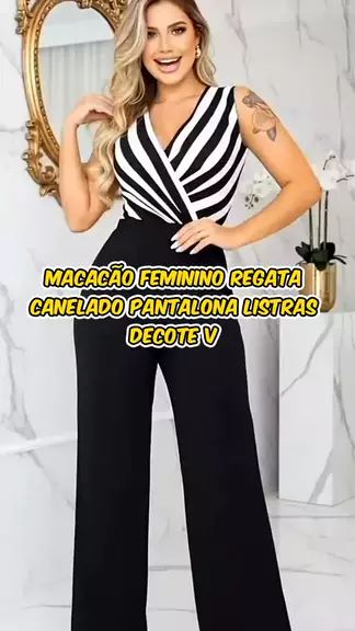 #MacacãoFeminino #ModaCanelada #PantalonaElegante #LookListrado #DecoteV
