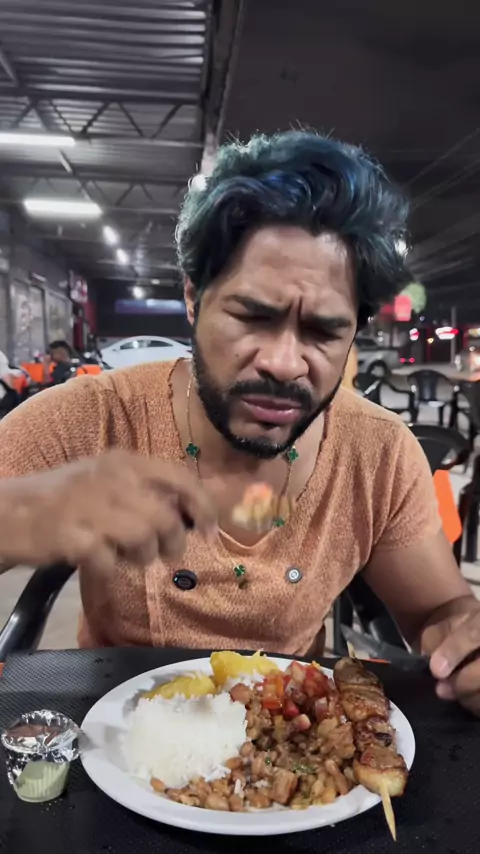 Experiemntando comida de rua jantinha com espetinho